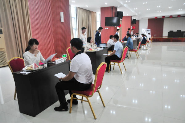 中午1:00点,宝马经销商的招聘面试于综合楼12层会议厅举行。我校12级经前期两轮选拔出的80多位同学参加了面试。现场大厅安静、有序,同学们在经销商面前,表现从容、自信,展现了我校学生的优秀素养。一些来自温州、义乌、永嘉、江西等外地的经销商也受到不少学生的青睐。此次经销商招聘的学生覆盖机电工(汽修)、服务顾问、钣金和喷漆四个岗位,招收人数超过60人。我校的办学实力、教学模式和学生优良的精神风貌、扎实的专业知识、全面的职业素养给经销商留下了深刻的印象,纷纷表示赞许,为此部分经销商现场追加聘用人数。
