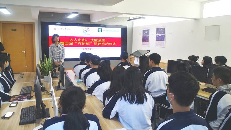 2020年11月3日下午,福建工业学校与福建有伦农业科技有限公司在学校产学研创中心举行第四届“有伦班”组班启动仪式。福建有伦农业科技有限公司陈能文总经理,我校信息专业教学部胡晓云主任、黄河老师、19级数媒高职班班主任全政文老师及全体同学出席了开班仪式,仪式由黄河老师主持。