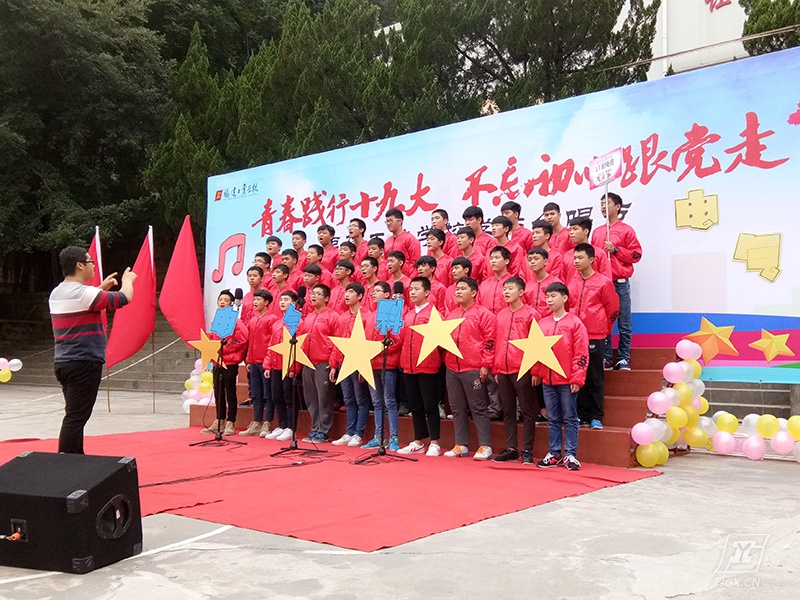 党的十九大的胜利闭幕,全国上下掀起了学习党的十九大的热潮。电气专业教学部团总支于2017年11月29日下午在我校篮球场举行了“青春践行党的十九大,不忘初心跟党走”主题大合唱比赛。本场大合唱比赛是第十届技能艺术节学生合唱节的一部分,本专业部共14个班级,每个班级唱响一首红歌。当各具特色的旋律飞扬在赛场时,学生们或激昂慷慨,或婉转动听的歌声也飘扬在赛场上空,给在场的观众带来了一场视听盛宴。