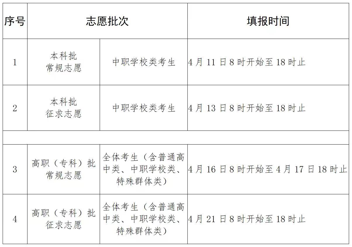 2024年福建省高职院校分类考试招生志愿填报时间安排表
