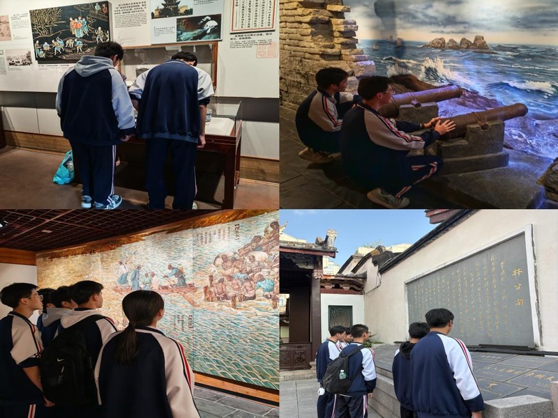 走进纪念馆,“苟利国家生死以,岂因祸福避趋之”的铿锵誓言映入眼帘,瞬间将师生带回百年前的峥嵘岁月。在讲解员的引导下,大家先后参观了“年少志高显英才”“宦海生涯展才学”“虎门销烟震寰宇”等主题展区,通过300余件珍贵文物、600余幅历史图片及场景复原,系统了解林则徐从求学立志到主持虎门销烟的完整历程。当驻足于虎门销烟的动态场景模型前,看到1839年林则徐下令在虎门滩销毁收缴鸦片的壮阔画面,听到“237万斤鸦片被彻底销毁,这是人类历史上首次大规模禁毒壮举”的讲解时,同学们无不被其以民族大义为重、坚决抵御外侮的勇气深深震撼。