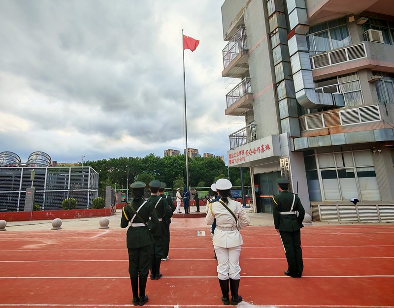 晨会在庄严肃穆的升国旗仪式中拉开序幕。国旗队迈着整齐划一的步伐,坚定地走向升旗台。全体学生肃立,齐声高唱国歌。