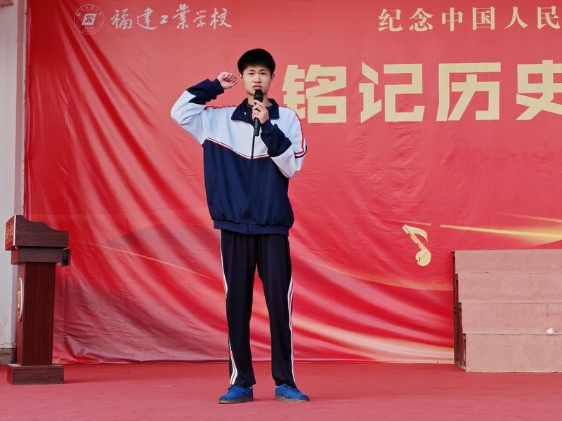 会上,机械专业教学部24机械电子(中本)班江光耀同学以《让“一二・九”的青春之光,照亮奋斗之路》为题发表国旗下讲话。他回顾了“一二・九” 运动中青年学子的救国壮举,号召全体同学传承先辈的爱国情怀与奋斗精神,把理想信念融入专业技能锤炼,以过硬本领书写青春答卷。